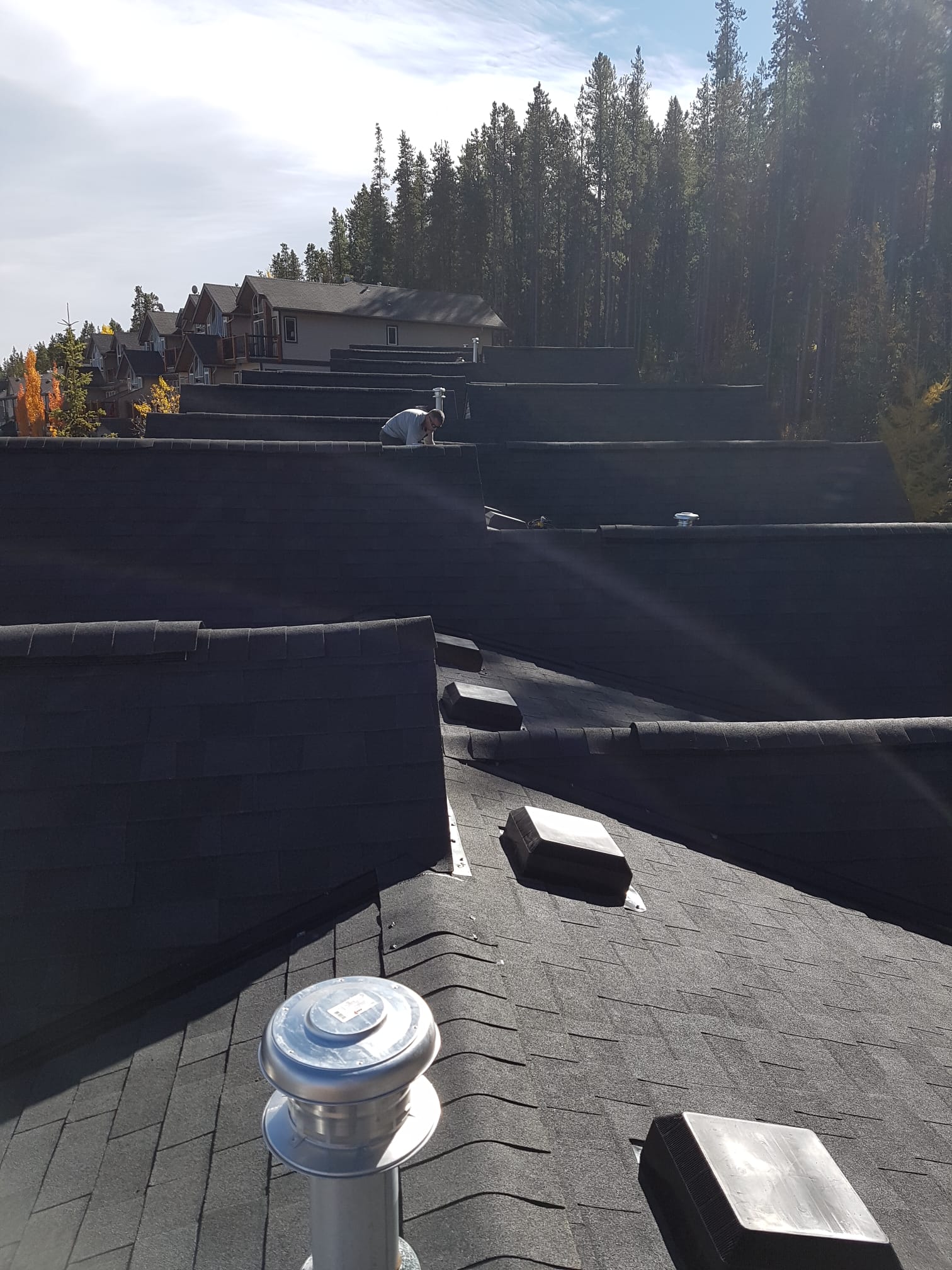 upgraded attic ventilation with three black turbine vents and new asphalt shingle roof