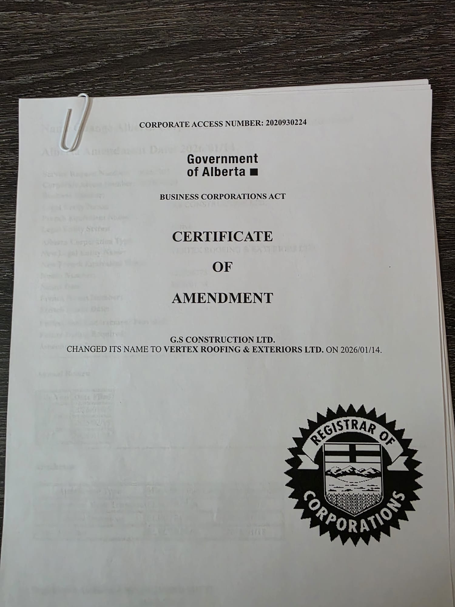 In January 2026, the company was officially rebranded as Vertex Roofing & Exteriors Ltd. through a Certificate of Amendment issued by the Government of Alberta. The new name reflects the company’s expanded scope of exterior services and its commitment to reaching the highest point—the vertex—of quality in everything we do.